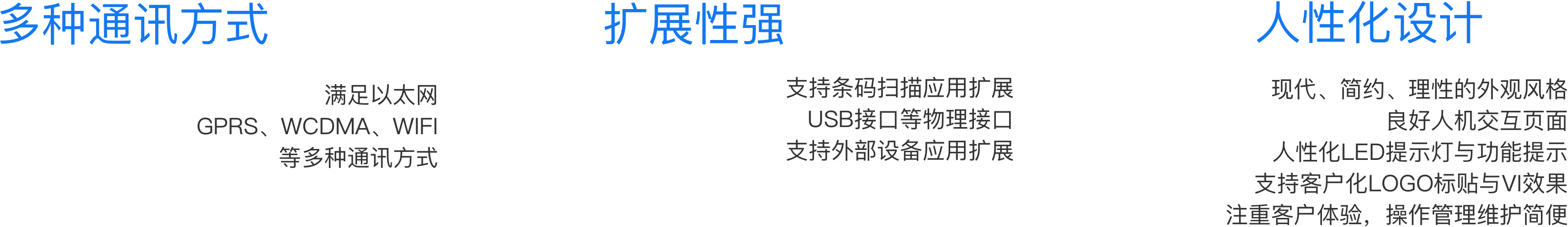以太网TCP/IP通讯;3G(WXCDMA/EVDO)通讯;可选Wi-Fi